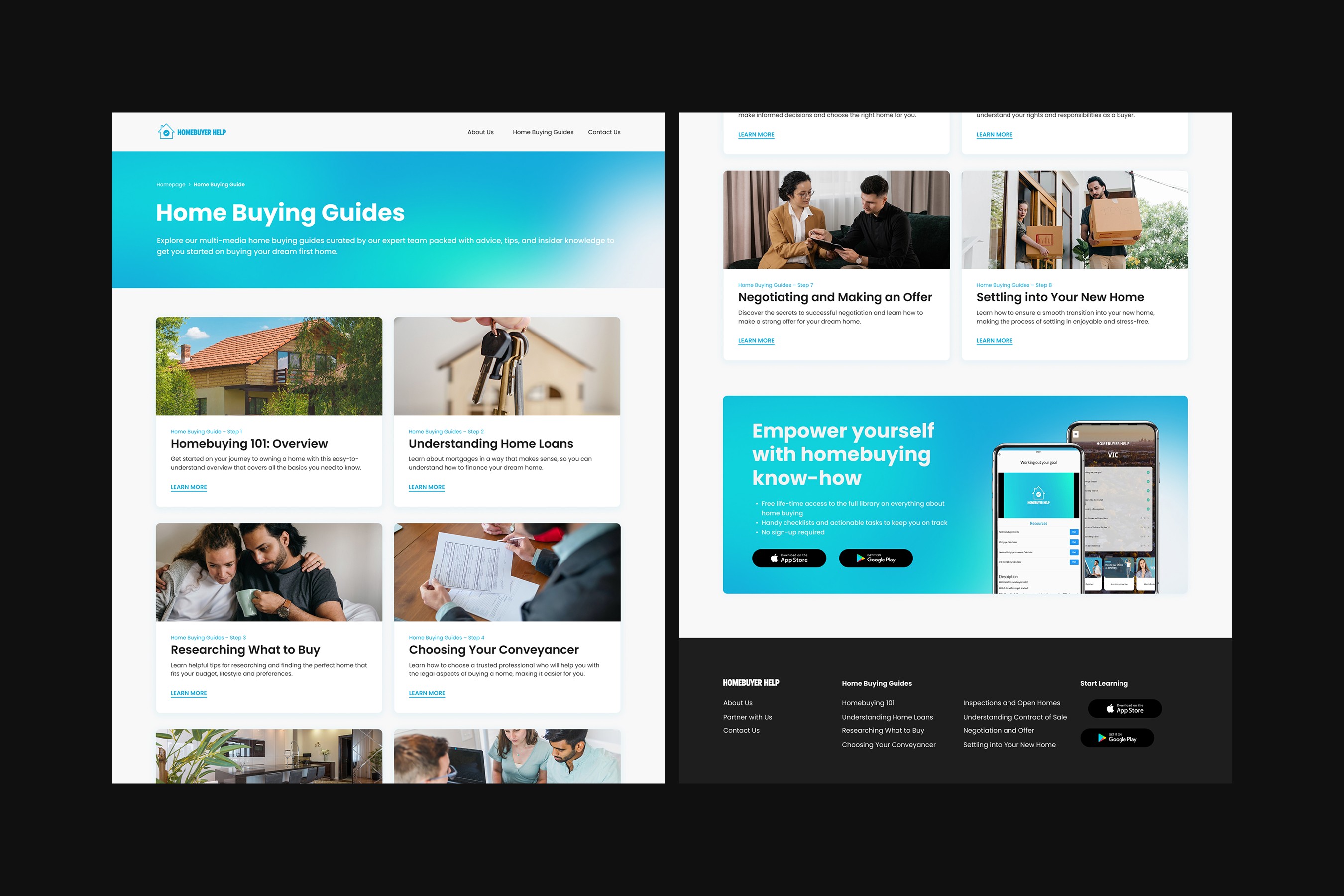 With our content strategy in place, we added visual imagery to create further context and refreshed the overall UI to better align with Homebuyer Help's existing brand guidelines.