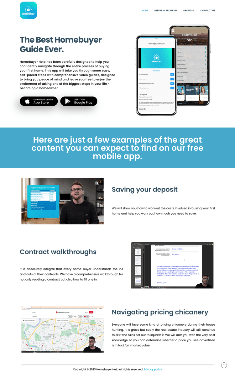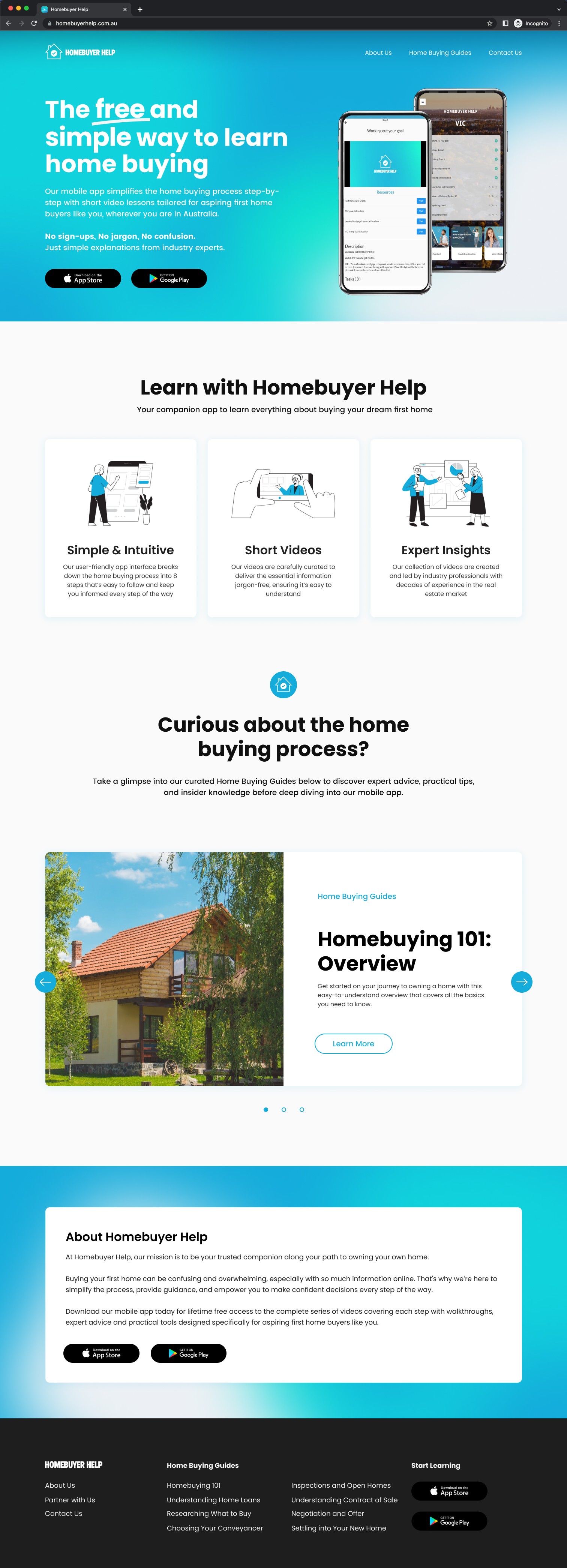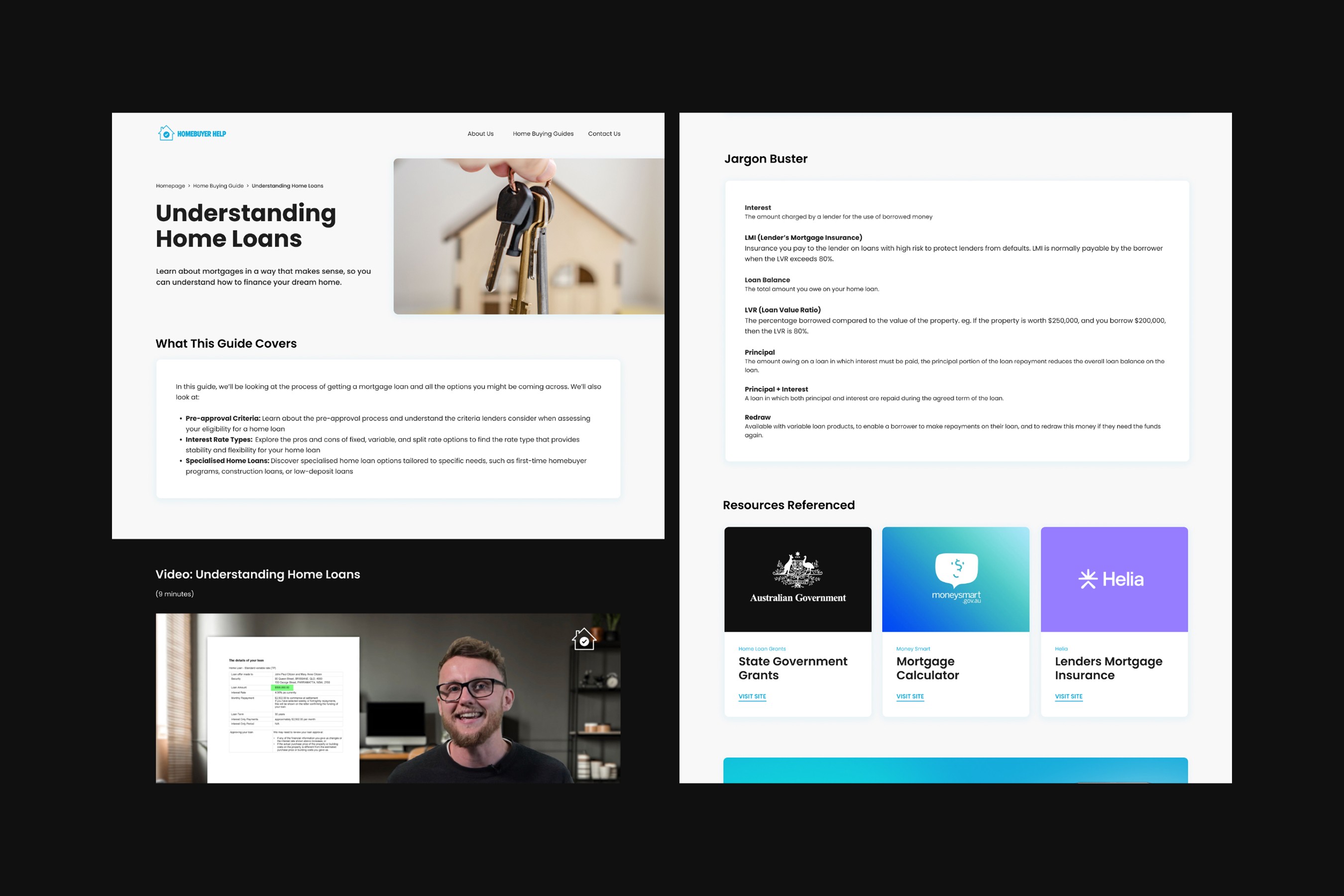 Homebuyer Help is an educational platform that simplifies the first-home buying process for Australians by walking them through the journey with a step-by-step guide.