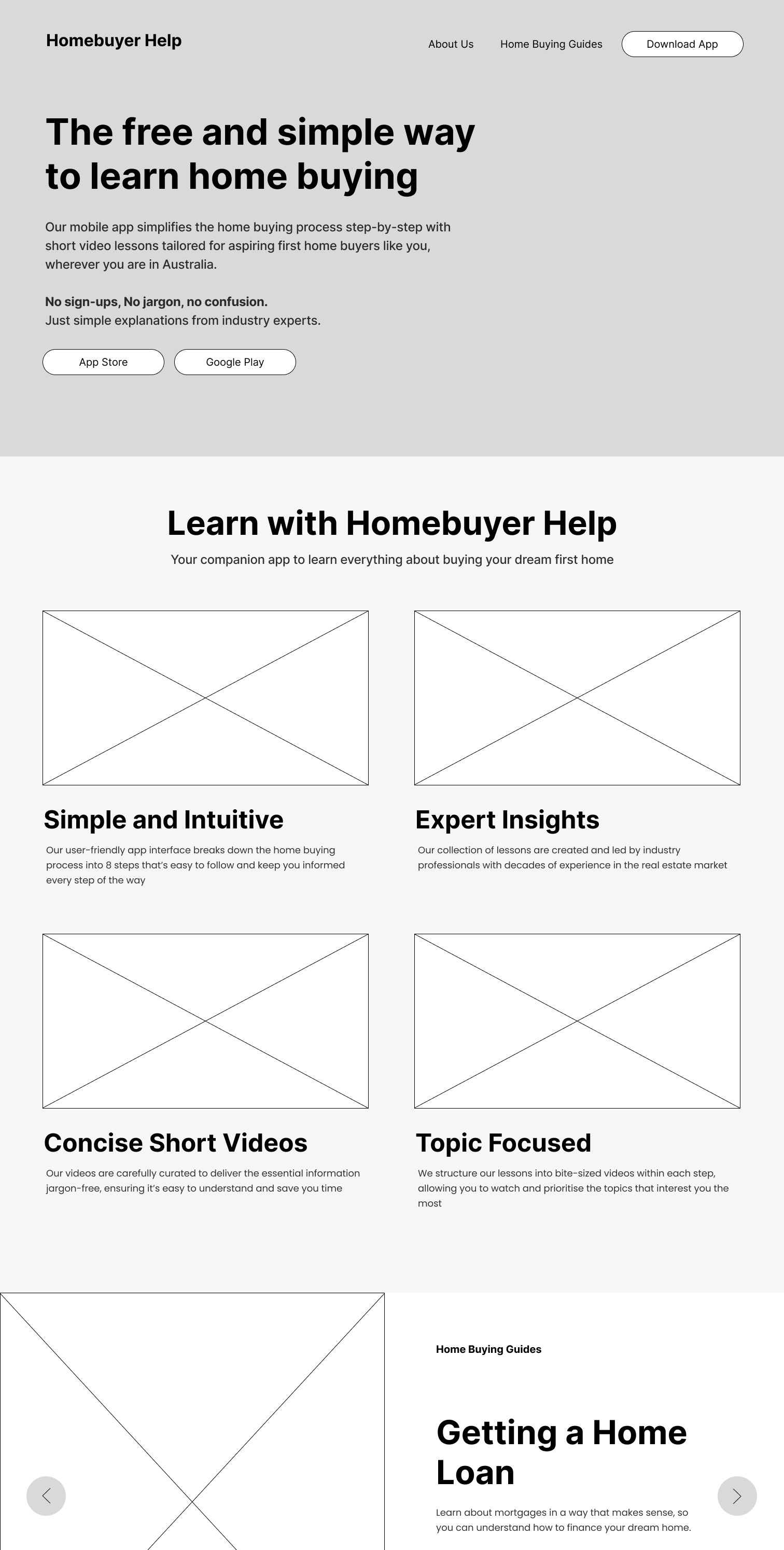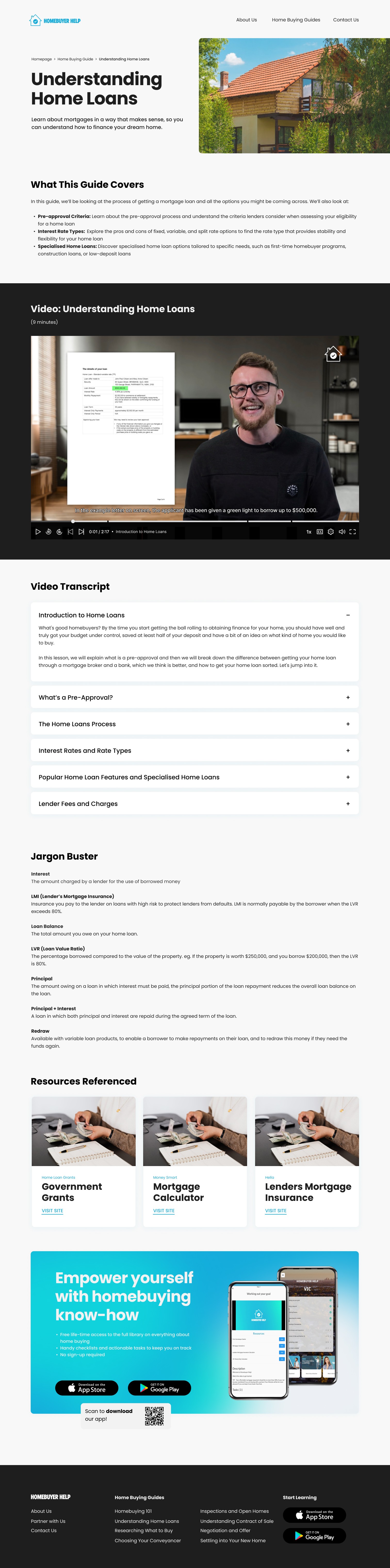 Homebuyer Help is an educational platform that simplifies how Australians learn about first-home buying by guiding them through the journey via self-paced steps.