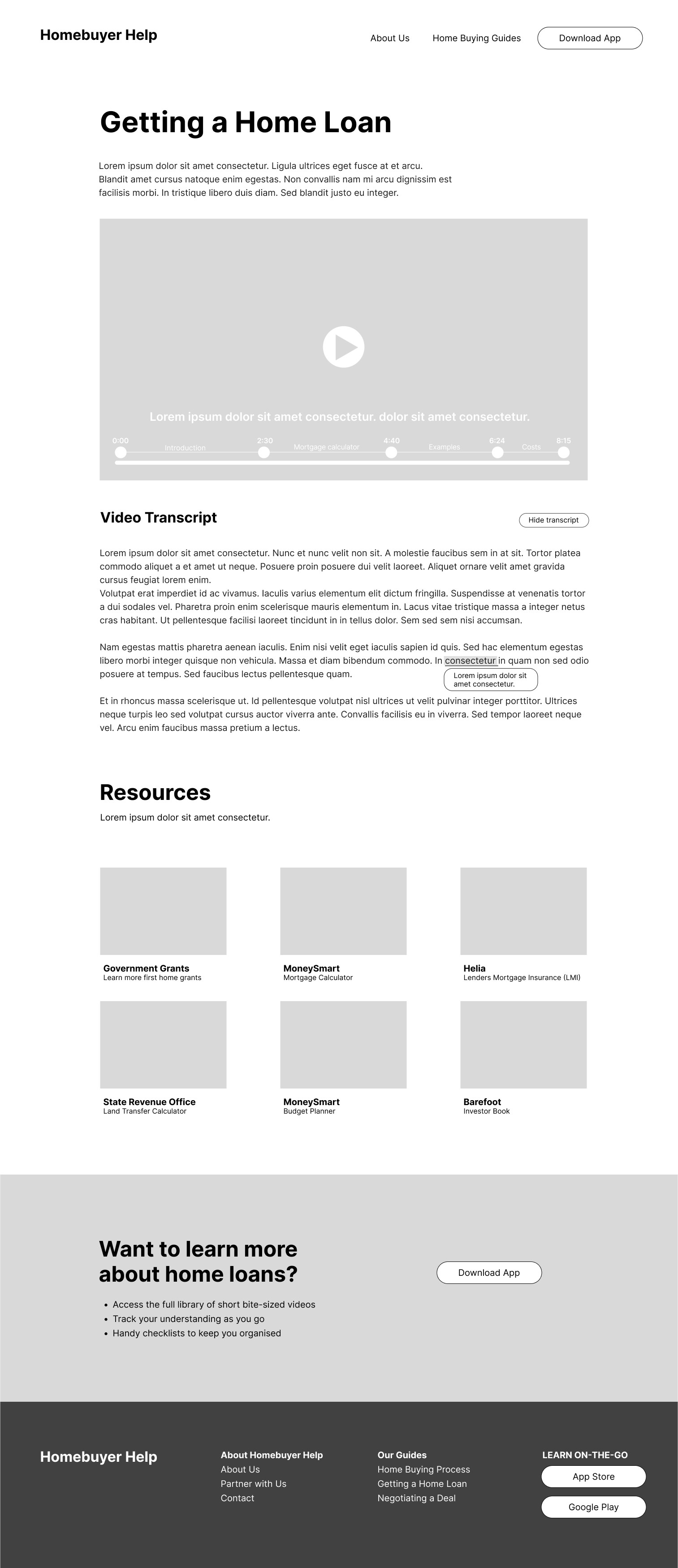 Our primary objective of our design solution was to ensure users were able to find relevant information easily and quickly on the new Homebuyer Help website.