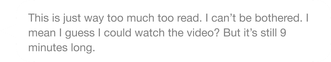 Our users are multi-taskers with short attention spans, so our content needs to be digestible and scannable.