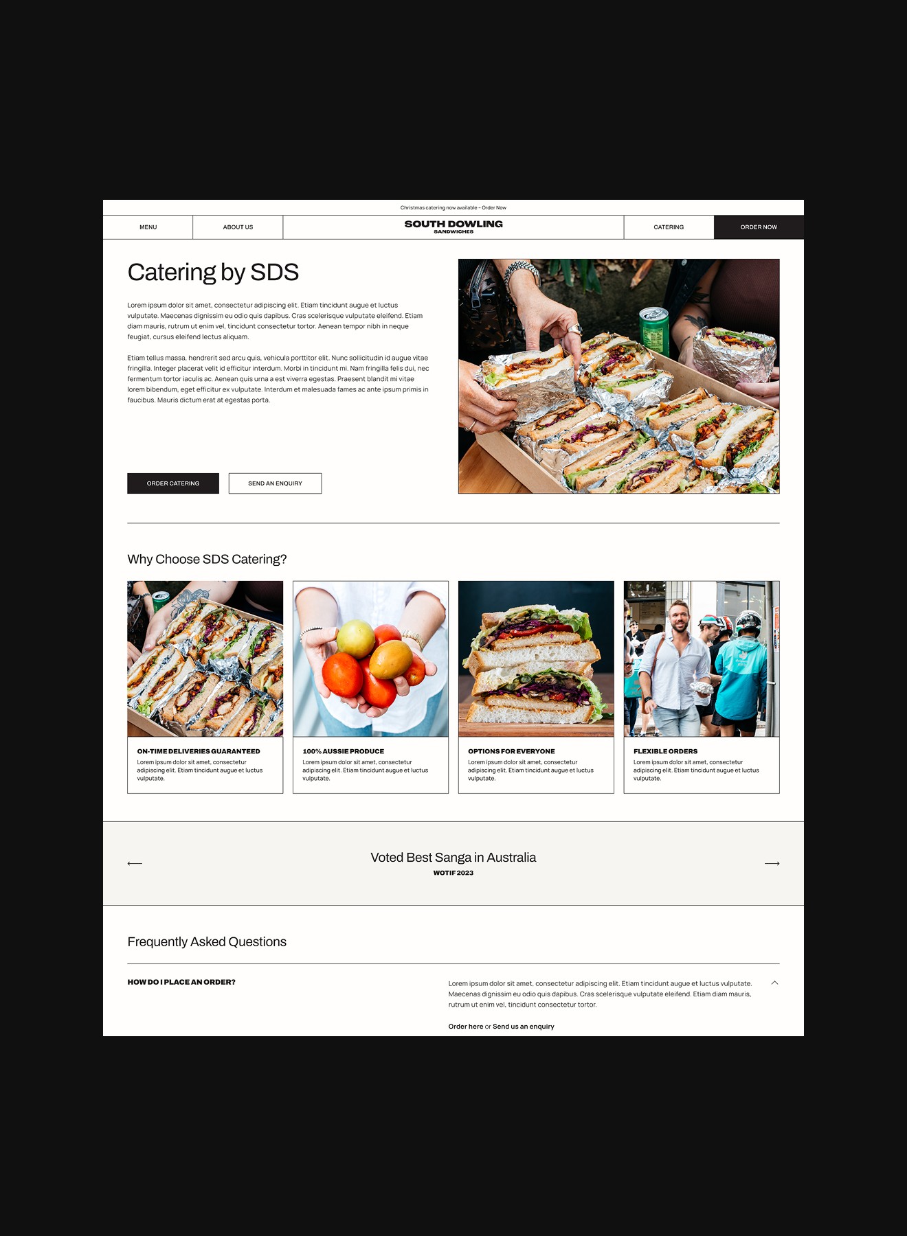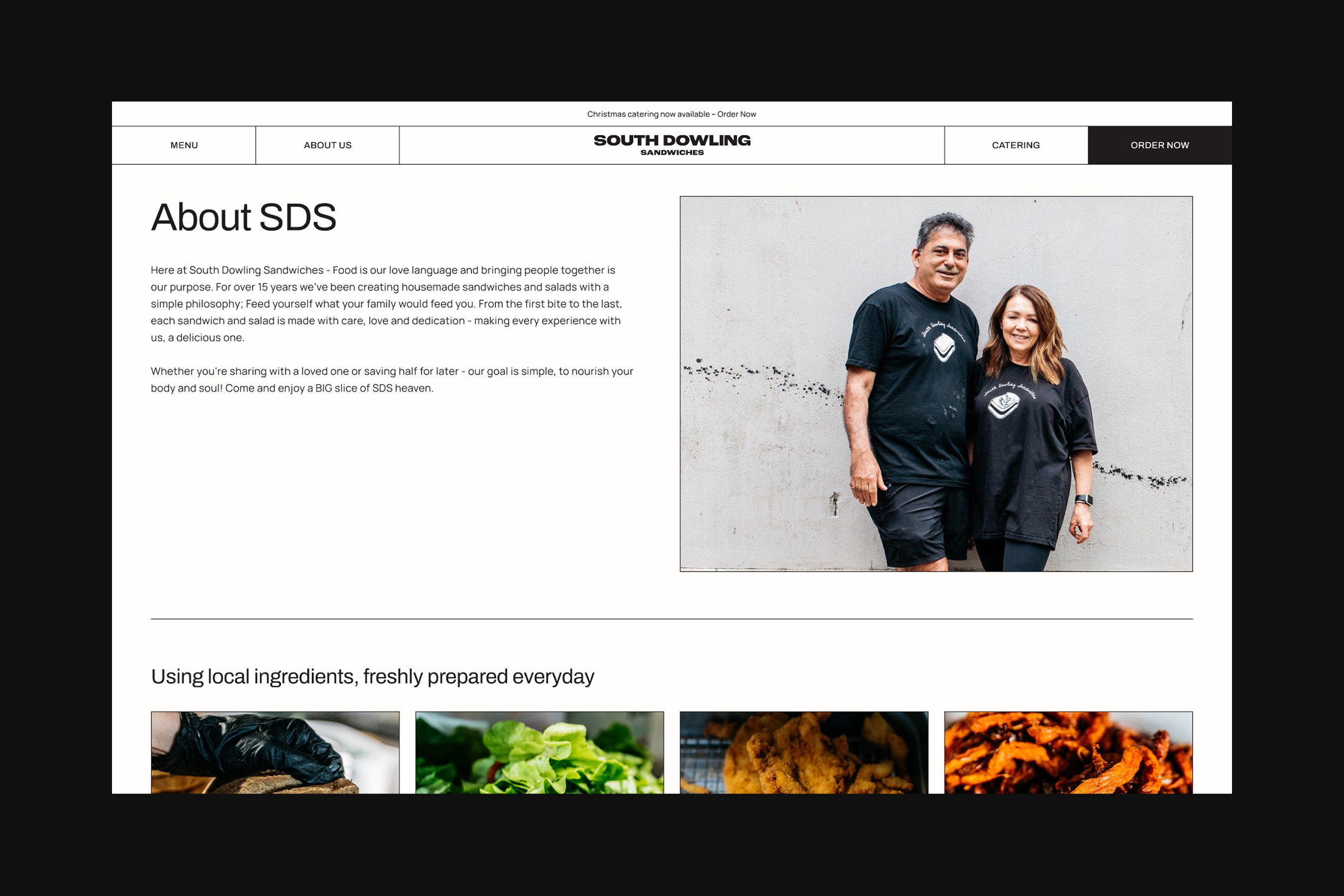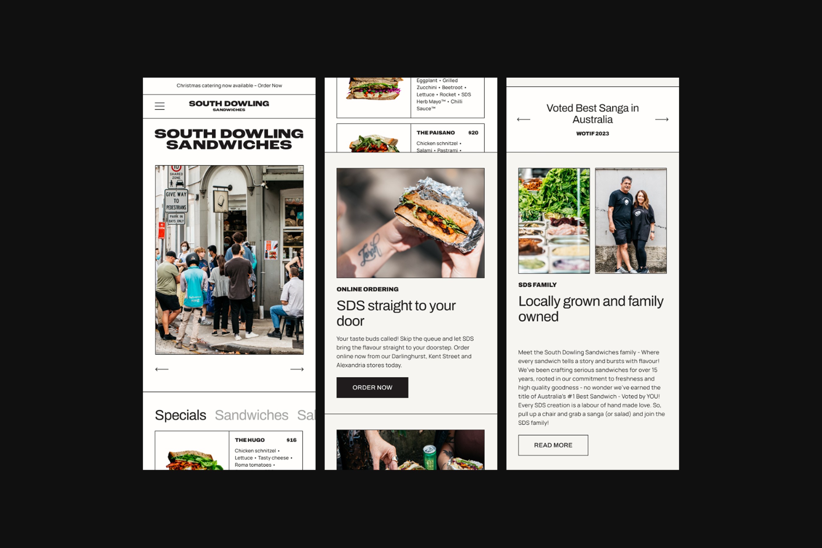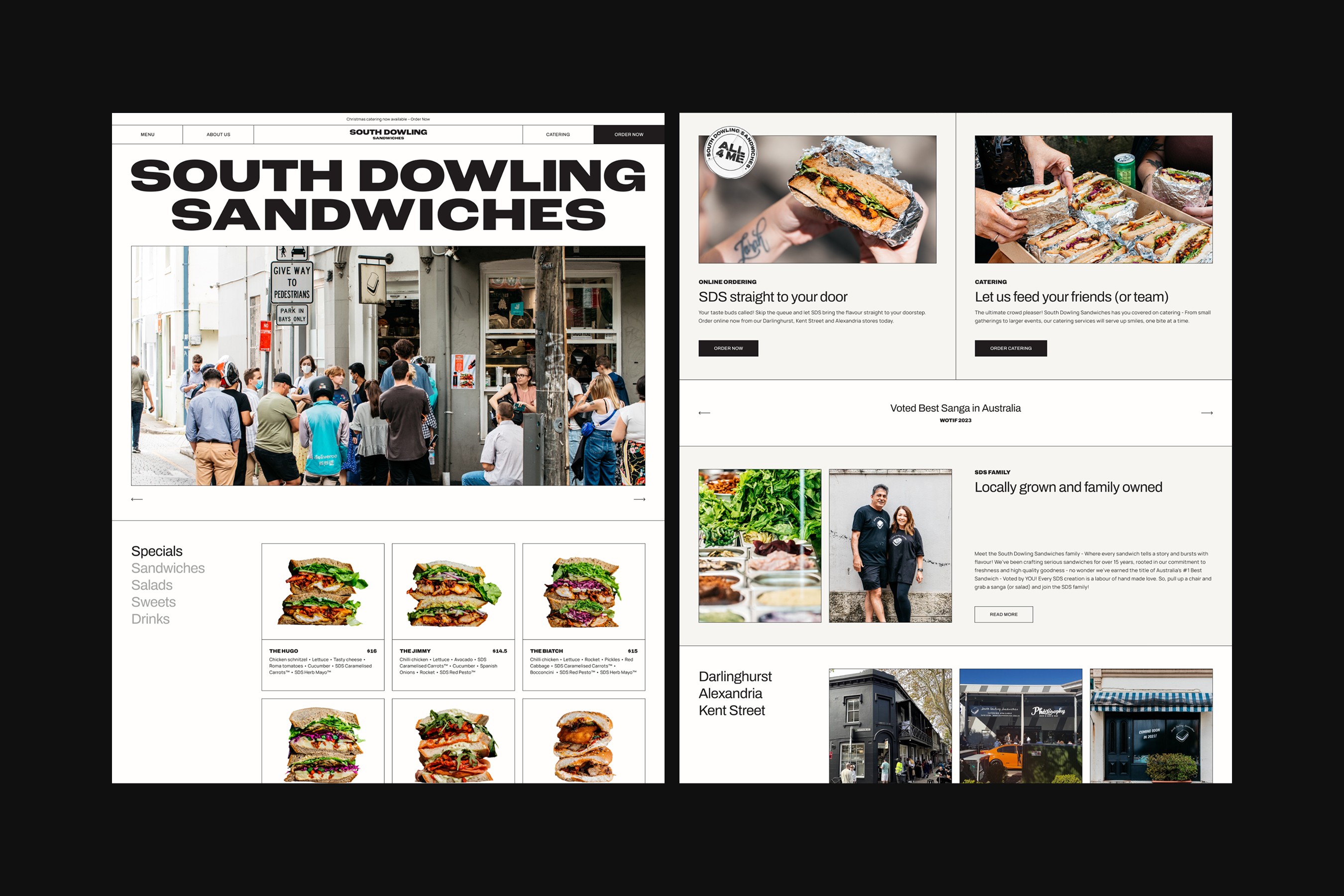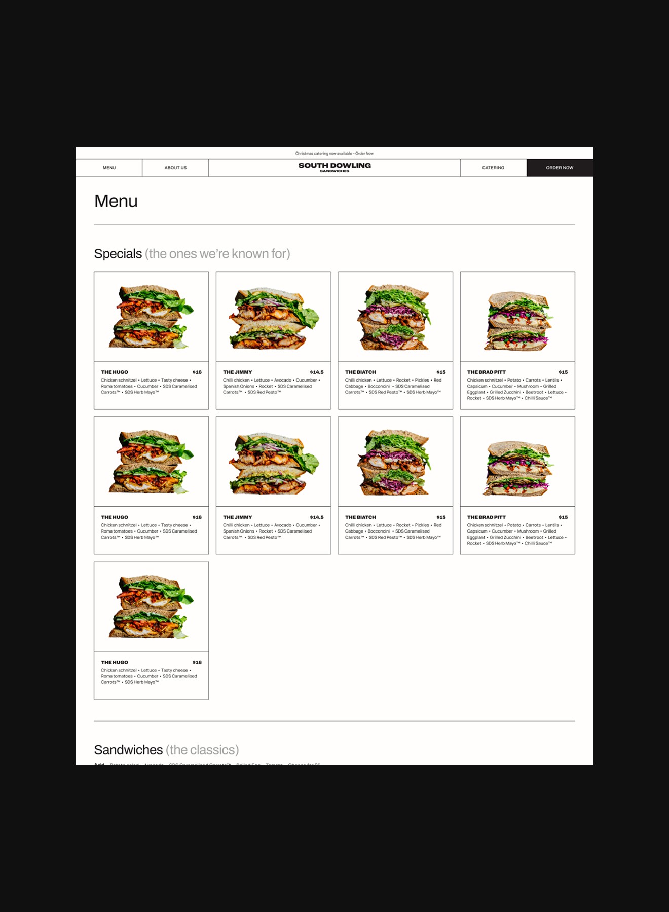 Although our website scope emphasised the importance of South Dowling Sandwiches' history and corporate catering offerings, we knew most website visitors would navigate to the online menu.