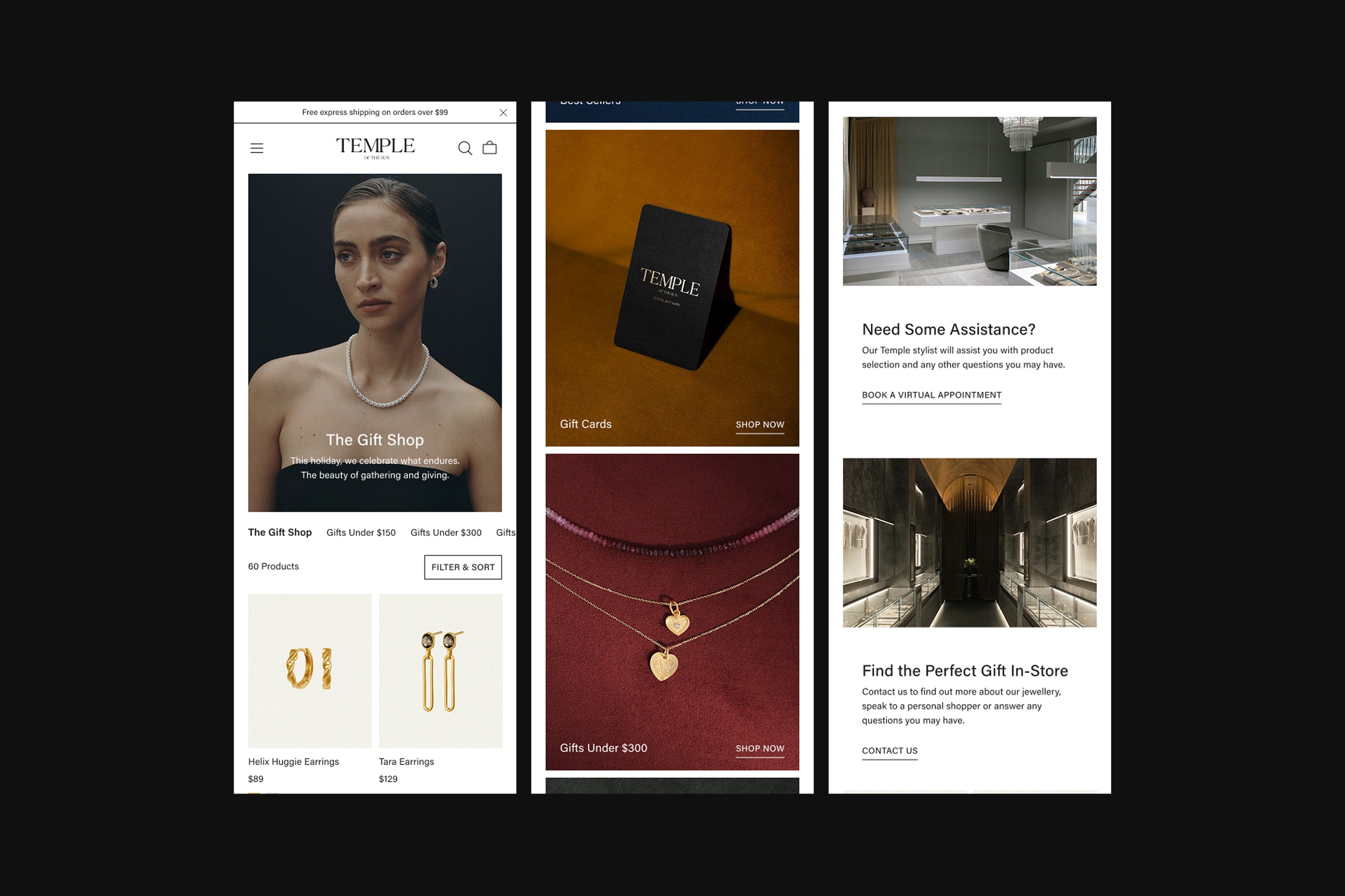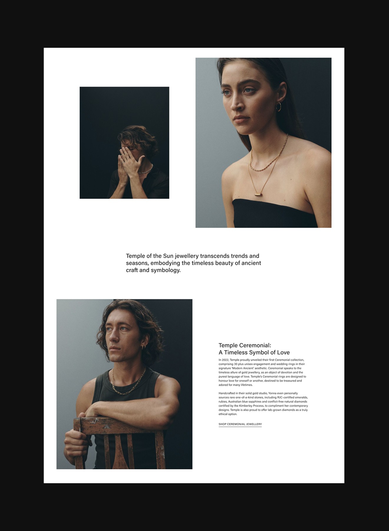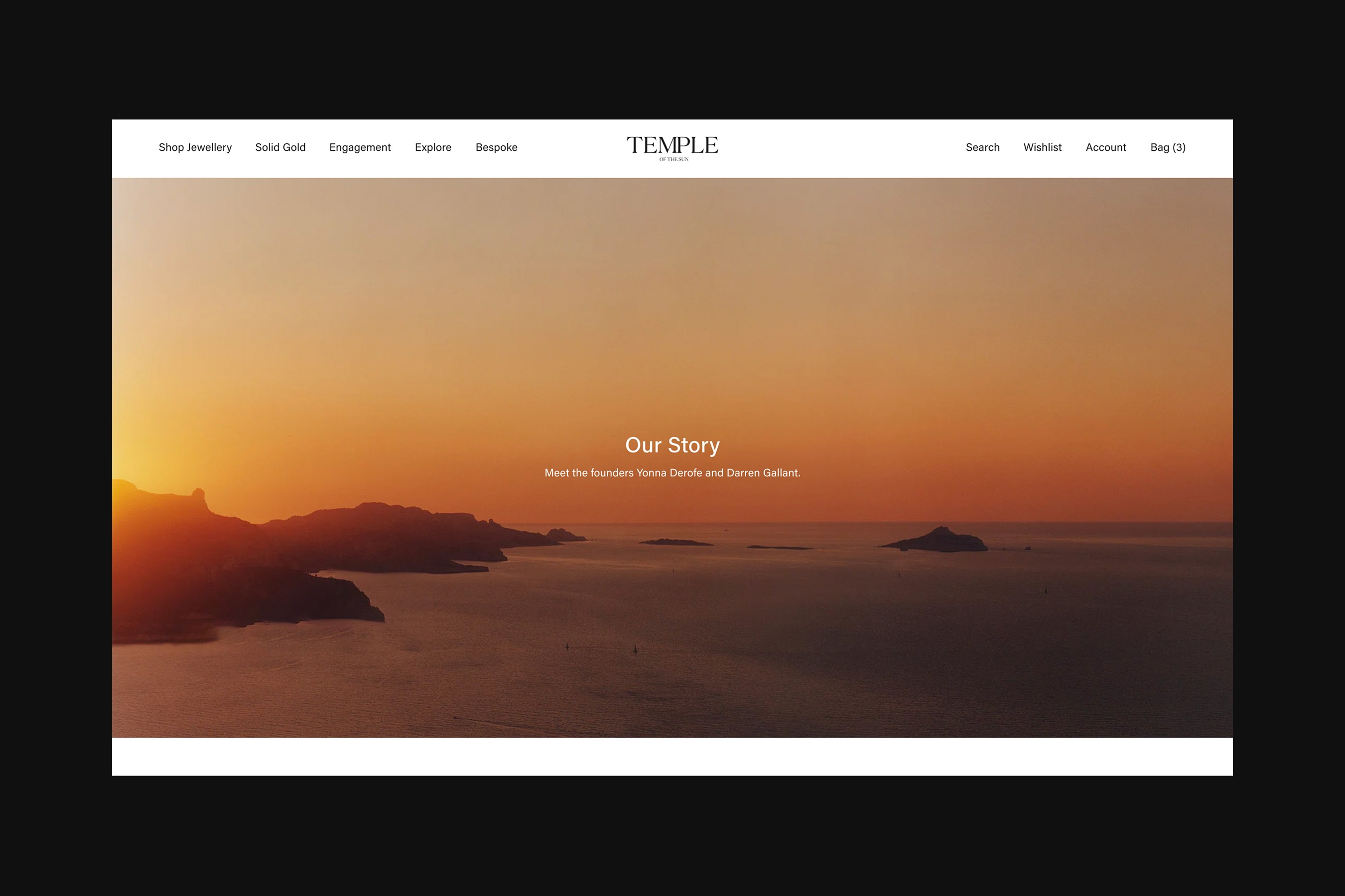 Based in Byron Bay, Temple of the Sun is an ethically-made jewellery brand known for their Modern Ancient aesthetic. Founders Darren and Yonna were looking to update the site to one that was customer-first, whilst reflecting the premium nature of the brand and letting their stunning imagery shine.